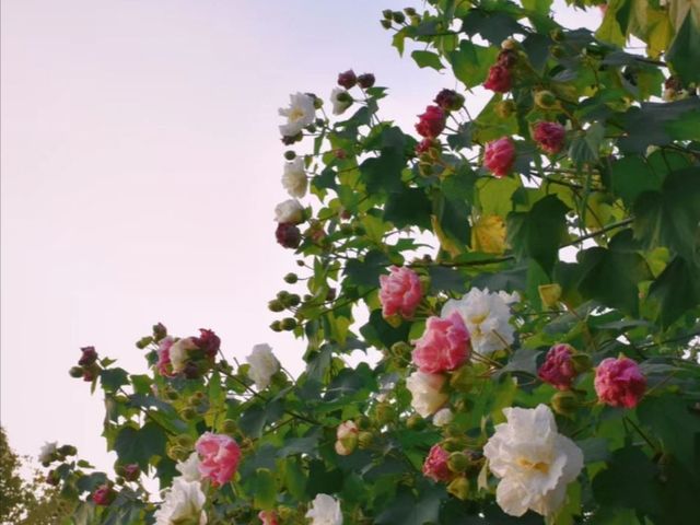 九月末,木芙蓉晚秋始开,或白或粉或赤,霜侵露凌却丰姿艳丽,皎若芙蓉出水,艳似菡萏展瓣。
