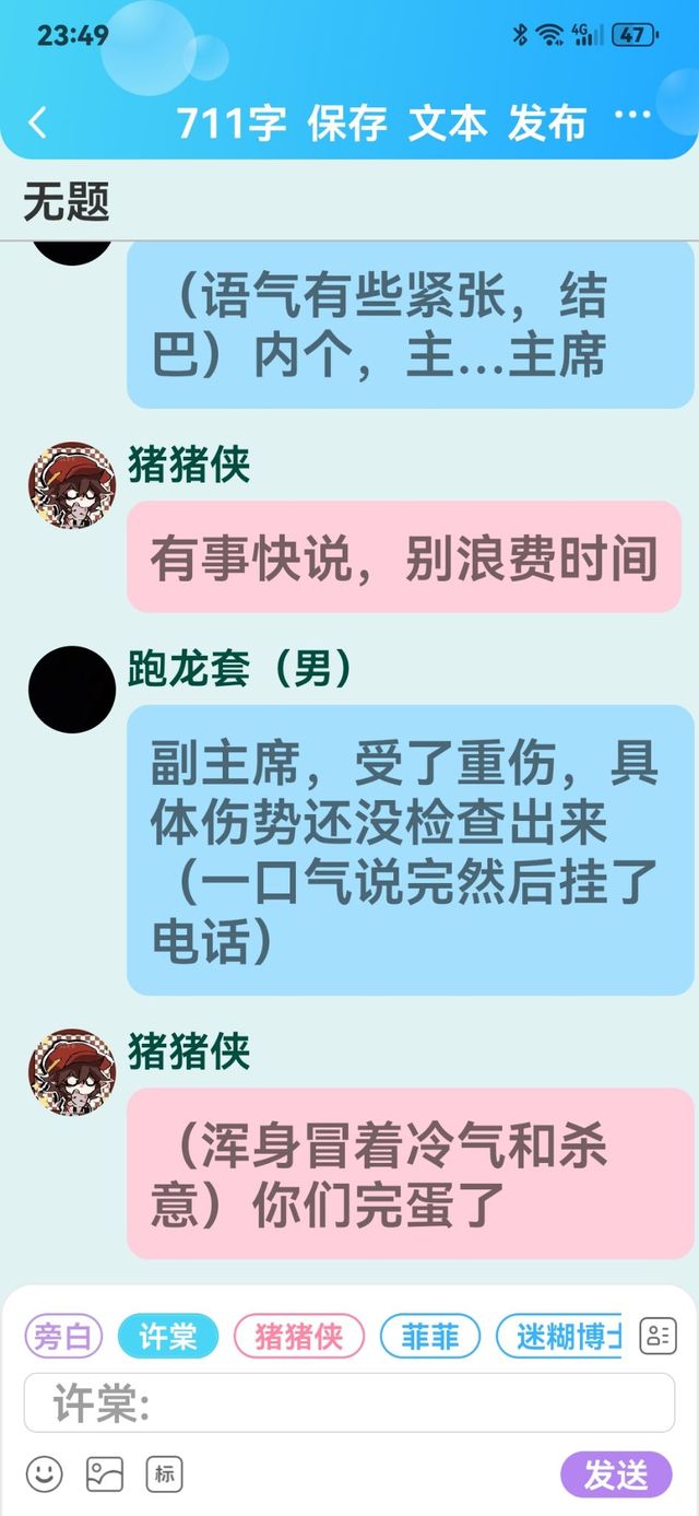 跑龙套(男):The vice chairman is seriously injured. The specific injuries haven't been examined yet. (Finish speaking in one breath and then hang up the phone.)