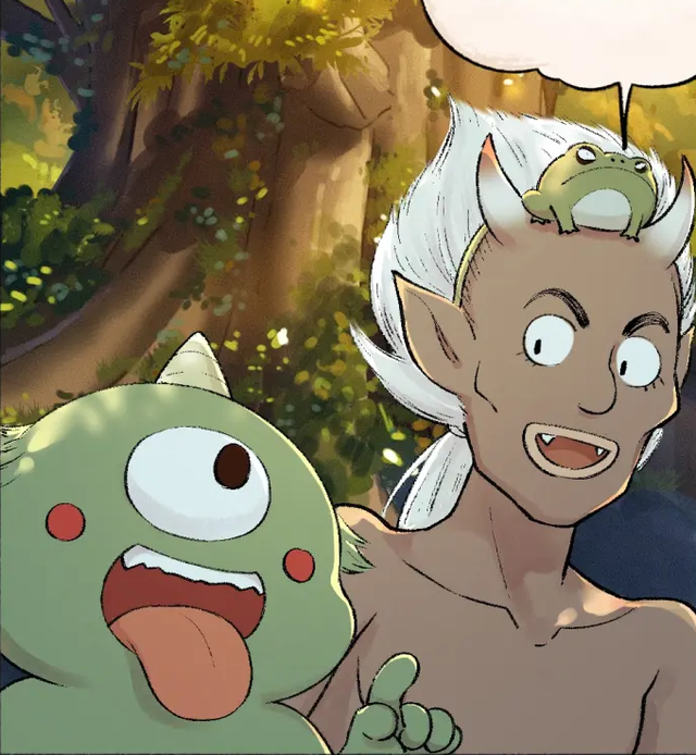 夕阳的余晖犹如金色的细纱,轻轻覆在那株屹立天地间的古树之上,将树梢间的小木屋渲染成了一幅流金溢彩的画卷。木屋的阳台仿佛悬浮在云端,那里,狐狸和尚一家三口恬静地享受着这份宁静时光,温馨的轮廓在金光中若隐若现。树下,有两只过路的妖怪在斑驳的树影中穿梭而过——