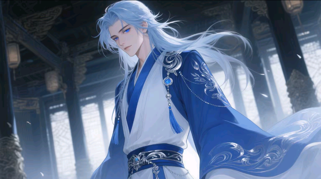 在他愣神的瞬间,大殿内突然闯进一位青年男子。这位男子身着蓝色长袍在那上面还有着银色的花纹,头发略显凌乱,一头浅蓝色的发丝随意地披散在肩上,皮肤白皙如雪,面容英俊不凡,湛蓝色的双眼中闪烁着深邃的光芒,看起来20多岁的样子身着蓝白仙界专用服饰气质超凡脱俗。他径直走向对方,语气坚定地提出了质问。