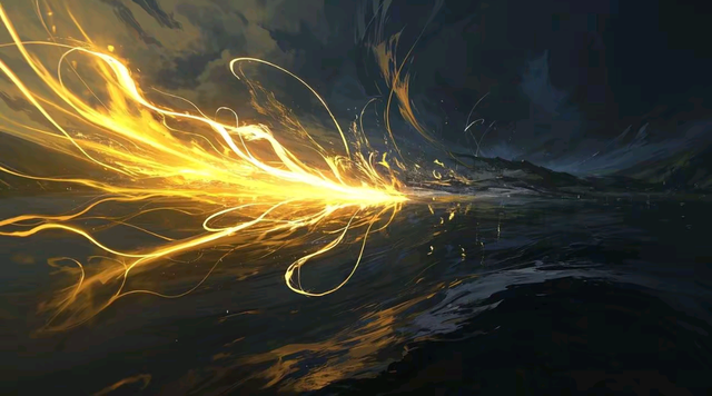另一侧,黑暗如浓稠的墨汁,悄然蔓延,静谧而深沉,隐藏着无尽的未知,只有偶尔闪烁的幽光,暗示着其中的神秘。交界处,光与暗激烈碰撞,光芒在黑暗边缘扭曲、挣扎,黑暗则在光辉的侵袭下,缓缓后退又不甘示弱地反扑,二者相互撕扯,勾勒出一道忽明忽暗、虚实交错的界限。